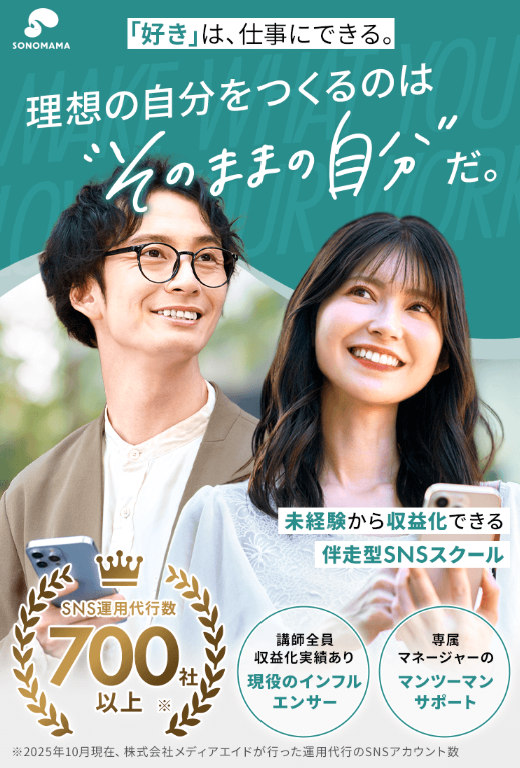 後悔しないSNSスクールの選び方:初心者がチェックすべき「5つの新基準」 「SNSを仕事にしたい」「副業で収入を得たい」と考えたとき、真っ先に候補に上がるのがSNSスクールです。しかし、現在は数多くのスクールが存在し、中には高額な受講料に見合わない内容のものも少なくありません。 特に初心者が、イメージだけで選んで挫折しないために。リサーチシートを作成する際にも役立つ「失敗しない選び方」を解説します。 1. 「対応媒体数」と「目的」の合致を確認する まずチェックすべきは、学べるSNSの種類です。Instagram、X(旧Twitter)、TikTokなど、媒体によって運用ノウハウは全く異なります。「何でも学べる」スクールは一見魅力ですが、初心者の場合は**「自分が一番やりたい媒体」に特化して深く学べるか**が重要です。広く浅い知識よりも、まずは1つの媒体でフォロワーを伸ばし、収益化する実力をつける方が成功への近道になります。 2. 「学習スタイル」が生活リズムに合うか どれほど良質な教材でも、継続できなければ意味がありません。 動画視聴型: 自分の好きな時間に学べるが、自律心が求められる。 マンツーマン・講義型: 強制力があり質問もしやすいが、時間の拘束がある。 忙しい会社員や主婦の方なら、スマホ1つで隙間時間に学習できるシステムが整っているかを確認しましょう。 3. 「サポート体制」の密度を重視する SNS運用は「正解」が日々変わります。マニュアルを読むだけでは解決できない疑問に、「誰が」「いつ」「どう」答えてくれるかが鍵です。 「24時間チャット相談可能か」「現役プロによる投稿内容の添削はあるか」といった、実務に即したフィードバックがあるスクールは、独学とは比較にならないスピードで成長できます。 4. 「講師の質」は現役の実績で判断する SNSの世界はトレンドの移り変わりが非常に激しいです。数年前の実績しかない「元・インフルエンサー」ではなく、**「今現在もアカウントを運用し、成果を出し続けている現役マーケター」**が講師を務めているかを確認しましょう。最新のアルゴリズムに基づいた指導が受けられるかどうかが、受講後の成果を左右します。 5. 「出口戦略(卒業後)」が明確か スキルを身につけた後、どうなりたいですか? 副業志望: 案件紹介や、クライアント獲得の営業サポートがあるか。 転職志望: ポートフォリオ作成支援や企業紹介があるか。 卒業して終わりではなく、その後の「仕事」に繋がるルートが用意されているスクールを選べば、受講料を「経費」として早期に回収することが可能です。 まとめ:比較表を作って「納得」の選択を SNSスクール選びで最も大切なのは、表面的な広告に惑わされず、自分の今のスキルと将来の目標の「差」を埋めてくれる場所を見つけることです。 まずは「対応媒体数」「サポート」「料金」などの項目で比較表を作成し、上位3校程度の無料カウンセリングを受けてみましょう。担当者の対応や雰囲気を感じることで、「ここなら頑張れる」という直感が確信に変わるはずです。